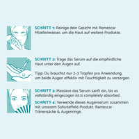 Remescar Feuchtigkeitsspendendes Augenserum wurde entwickelt, um die empfindliche Partie unter den Augen zu pflegen. Seine kraftvolle feuchtigkeitsspendende Formel füllt die Haut tiefgreifend auf, verbessert die Elastizität und reduziert sichtbar feine Linien.
