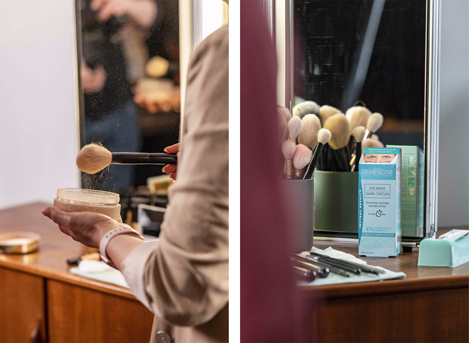 Es ist am besten, Make-up auf Ölbasis zu vermeiden: Es mindert die Wirkung der Sofortcreme. Ich empfehle auch immer, zuerst das Make-up aufzutragen und erst danach die Sofortcreme gegen Tränensäcke. Wenn man es andersherum aufträgt, wischt man oft schon einen Teil der Sofortcreme weg, was ihre Wirkung verringert.