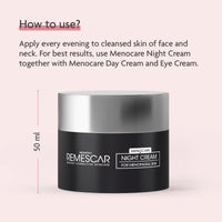 Apply every evening to cleansed facial skin. For best results, use Menocare Night Cream in combination with Menocare Day Cream and Eye Cream.