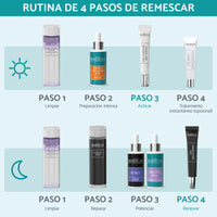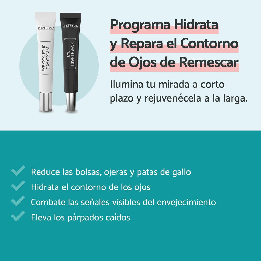 El Dúo Contorno de Ojos Hidratante & Reparador de Remescar incluye la Crema Contorno de Ojos de Día y el Reparador Noche Contorno de Ojos. Ambos productos hidratan, reafirman y reparan la delicada piel del contorno de los ojos. El resultado es una mirada más fresca, firme y luminosa.
