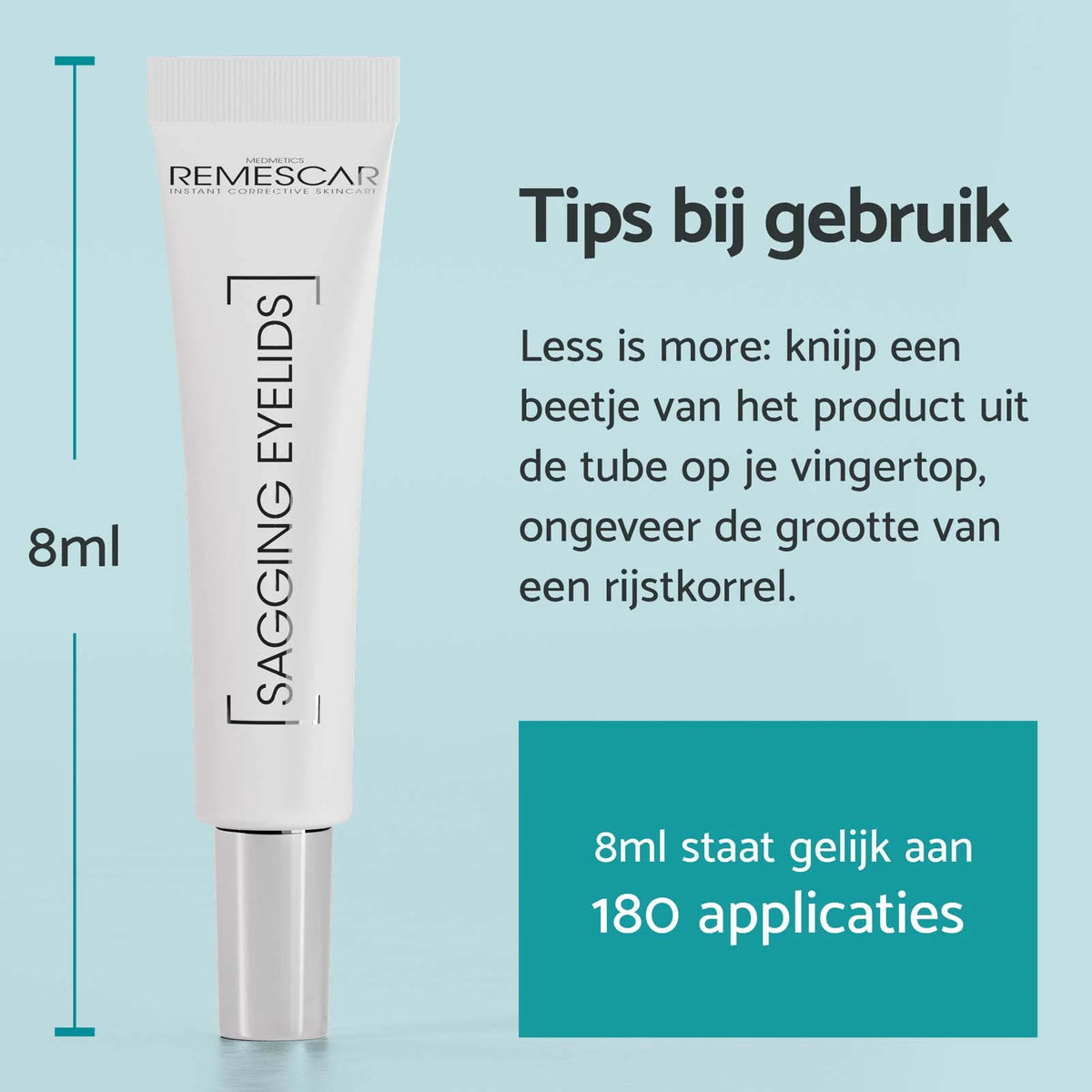 Correggere le palpebre senza chirurgia? È possibile con Remescar Sagging Eyelids: questa crema solleva e rassoda le palpebre cadenti in pochi minuti. Il risultato rimane visibile fino a 8 ore e si può facilmente combinare la crema con il trucco. Perché sottoporsi a una costosa correzione chirurgica delle palpebre quando è possibile sollevarle facilmente con una crema? Scegliete Remescar Sagging Eyelids: risultati efficaci, immediati e clinicamente testati.