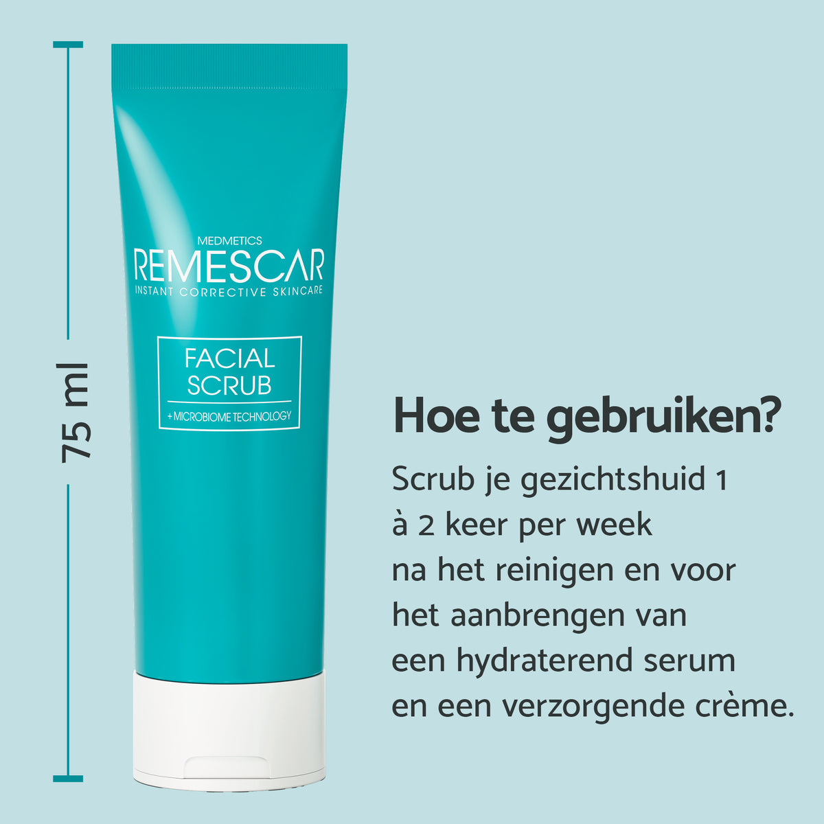 Deze Gezichtsscrub verwijdert dode huidcellen en helpt zo het vernieuwingsproces van je gezichtshuid te versnellen. De drievoudige exfoliërende actie zorgt ervoor dat je huid een gladde, egale en jeugdige uitstraling behoudt en perfect voorbereid is voor het aanbrengen van je andere Remescar-producten. Regelmatig exfoliëren kan helpen bij het verminderen van hyperpigmentatie, rimpels en fijne lijntjes. De formule bevat ook Microbioom Technologie, die het behoud van een gebalanceerde huidbarrière ondersteunt, en is gemaakt met 97% ingrediënten van natuurlijke oorsprong. Gebruik 1 tot 2 keer per week voor optimaal resultaat!